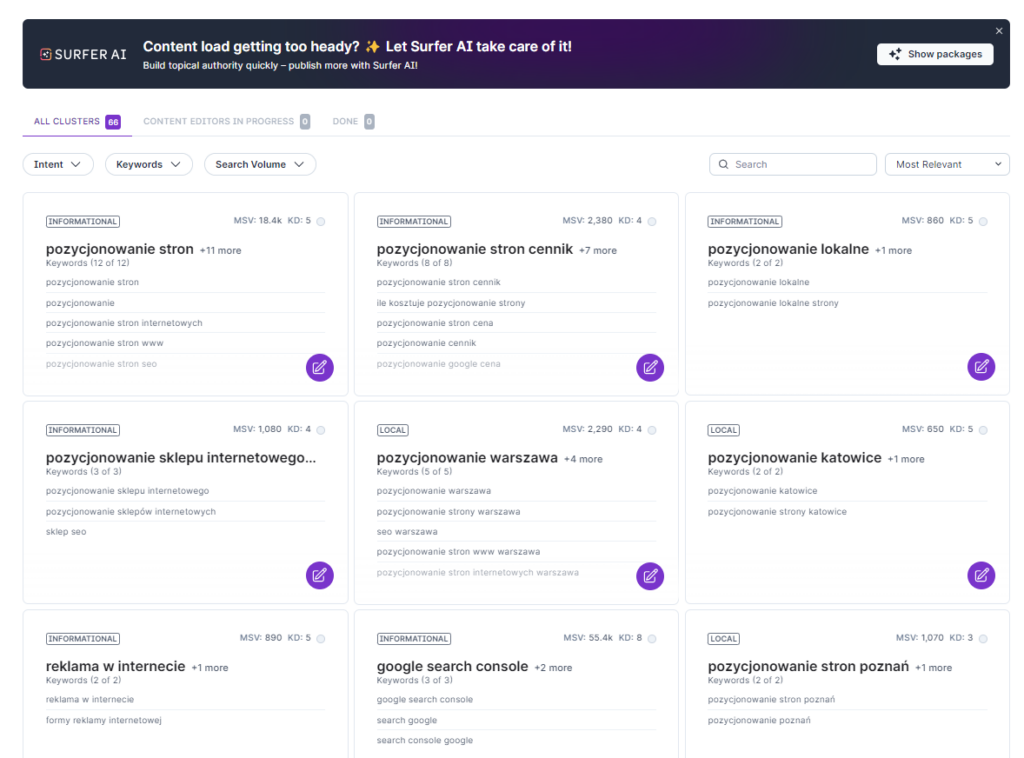 - Dostęp do edytora treści Surfer